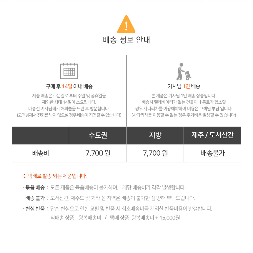 | 품질보증기준 | 소비자 분쟁해결기준에 의거 교환 또는 보상받을 수 있습니다 | ||