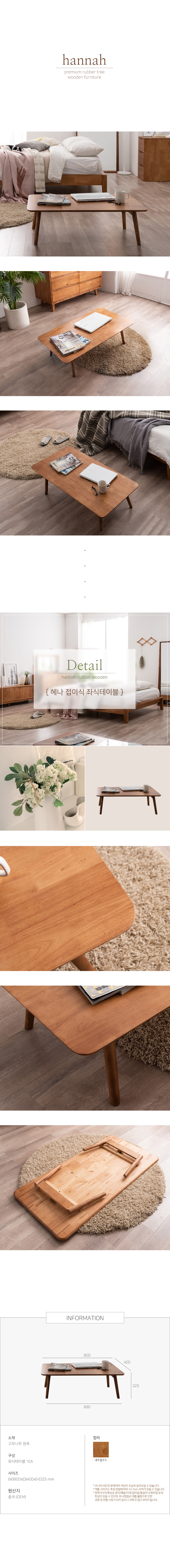| 품명 및 모델명 | 헤나 접이식 거실 원목 좌식테이블 800 | ||